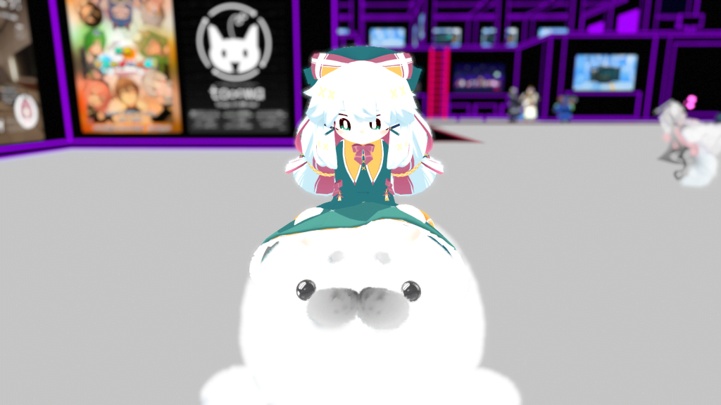 気づくかと思いますが私のアバターはアザラシでこのアバターは可愛くて上に乗れるもふもふした動物アバターでとても好評です